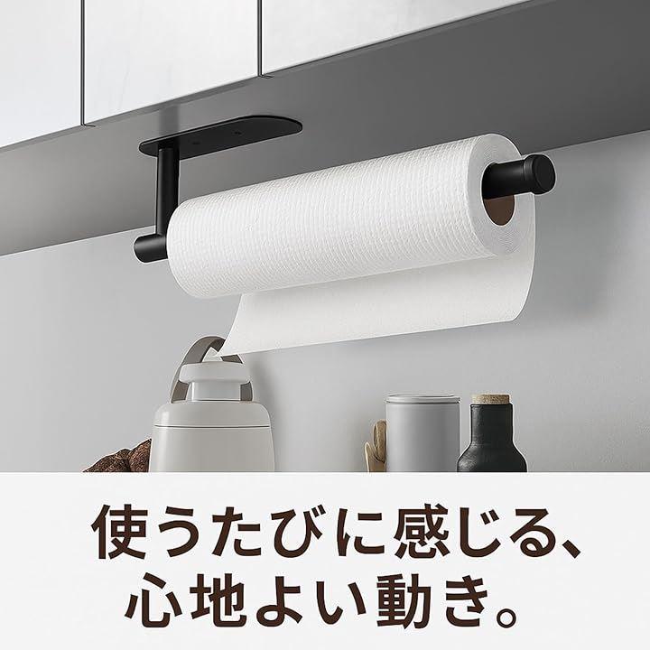 強力な粘着シートで、工具を使わずにワンタッチで取り付け可能なキッチンペーパーホルダーです。