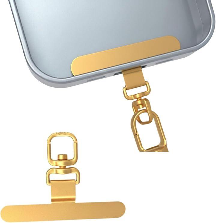 「使い方」 簡単2ステップで装着可能: 1. スマホケースの充電口からホルダーのDカンを出す 2. ケースにスマホを装着するだけ 「商品仕様」 *素材:ステンレス *カラー:ブラック / シルバー / ゴールド / ゴールドピンク *タイプ:細長タイプ ・寸法:横幅 約45mm x 縦幅 約8mm ・厚さ:約0.3mm ・重量:約1.4g 「対応機種」 ・iPhone / Android など各種スマートフォンに対応 ・ストラップホールのないスマホケースにも対応 「セット内容」 ・ストラップホルダー(細長タイプ)