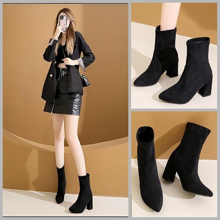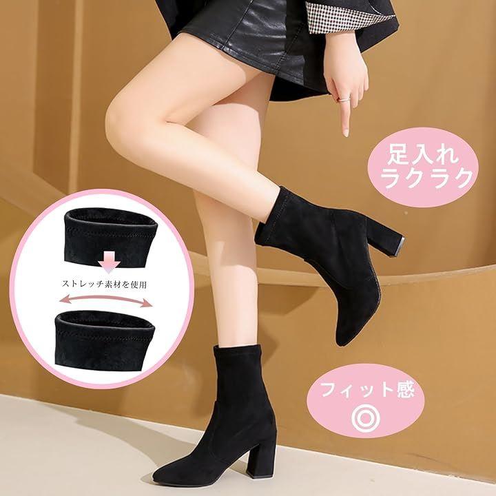 ストレッチショートブーツは8cmの太ヒールを採用。