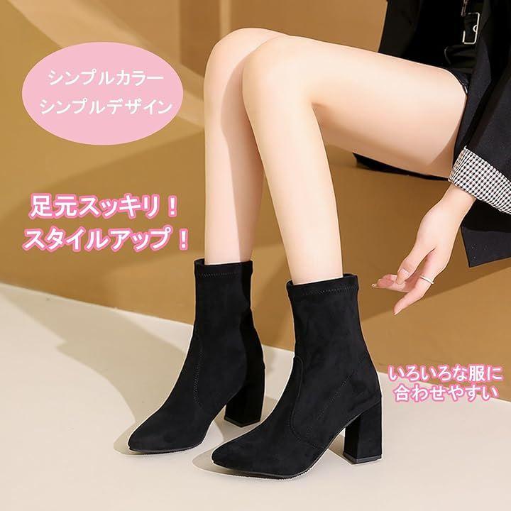 ストレッチショートブーツは8cmの太ヒールを採用。