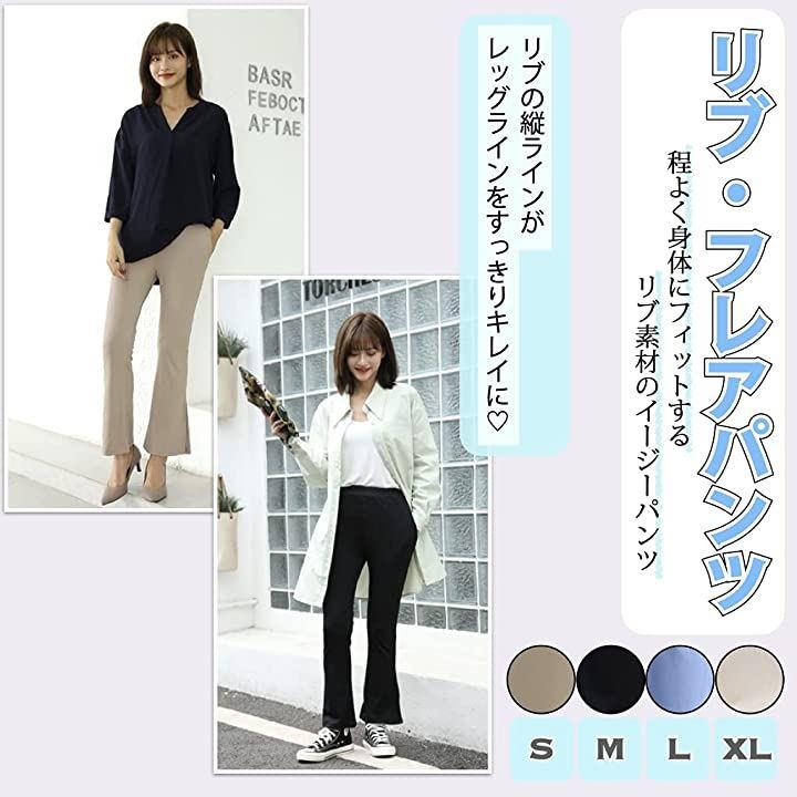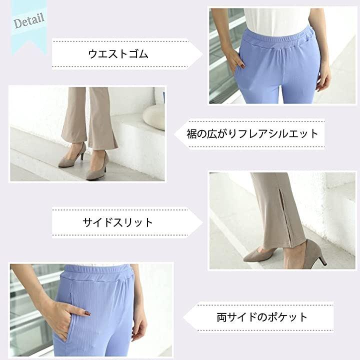 膝部分から裾に向かって広がるフレアラインがすっきりと細く見せてくれる優秀ボトムスです。