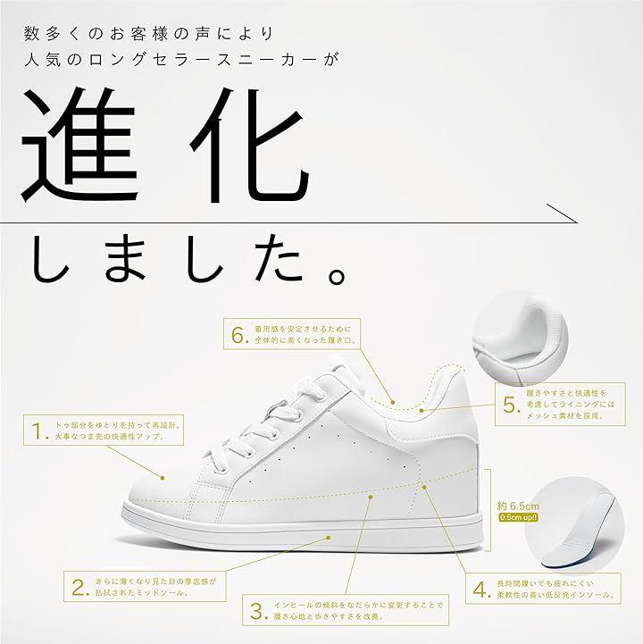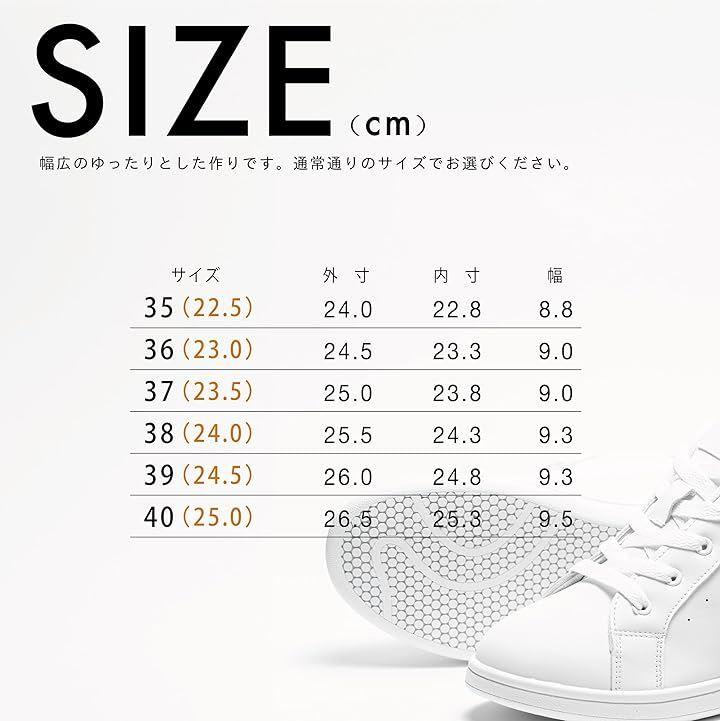 しっかりした安定感で履き心地も抜群。。 おしゃれなホワイトベースのスニーカーはファッションのアクセントに欠かせないアイテム。一般的な厚底スニーカーよりも軽量化を実現。(片足あたりの重さ 245~330グラム)水を弾くPU素材のため、雨の日にもお使いいただけ、汚れにも強い仕様です。 (*素材の特徴となり、防水加工ではございませんのでご注意下さい) 普段使いや通学、ライブや野外イベント、たくさん歩く旅行にも。快適さにこだわったスニーカーは、立ち仕事の方にもお勧めします。
