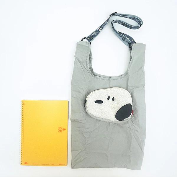スヌーピーフェイスのポケットがポイントのショッパーバッグです。A4サイズも収納可能なショッパー型デザインのトートバッグ。長財布、スマホ、ボトル、A4ファイル、ポーチなどが収納可能◎取り外し&長さ調整可能な、両面プリントのショルダーベルト付きなのでシーンに合わせて、手持ち・肩掛け・斜め掛けと使い分けができて便利♪真ん中のおすましフェイスのポケットがキュート☆使わないときは、このポケットをひっくり返してショッパー本体を収納すればなんと違う表情のスヌーピーに大変身!!コンパクトに持ち運びができちゃいます☆背面のルーポケットはスマホなど出し入れの多いアイテムの収納に便利です♪【サイズ】平置き時:約W28×H(中央部分)36(持ち手込)51cm、ショルダー最長:約85cm