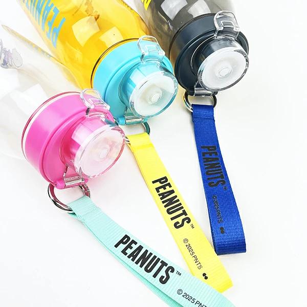 スヌーピーのストラップ付ドリンクホルダーです。オシャレなベルト付きで使いやすい☆パッと開けてすぐ飲めるので、スポーツ時などにも◎フタも無くすことなく安心!ボトルもクリアなので中身も確認しやすい◎ランチのお供にもぴったりです♪【容量:1100ml】