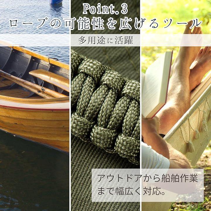 「ロープワークを効率化」 ロープの編み込み(スプライシング)や結び目を解く際に作業効率をもたらします。