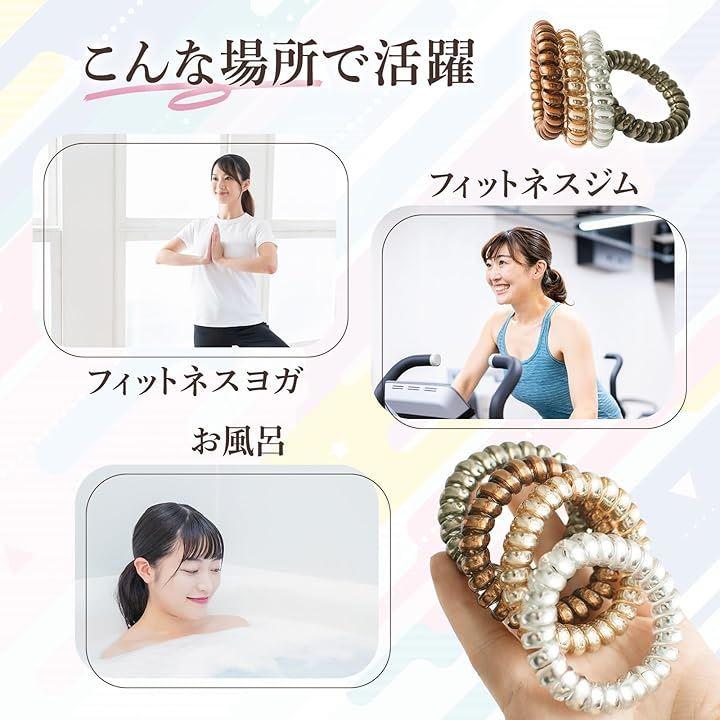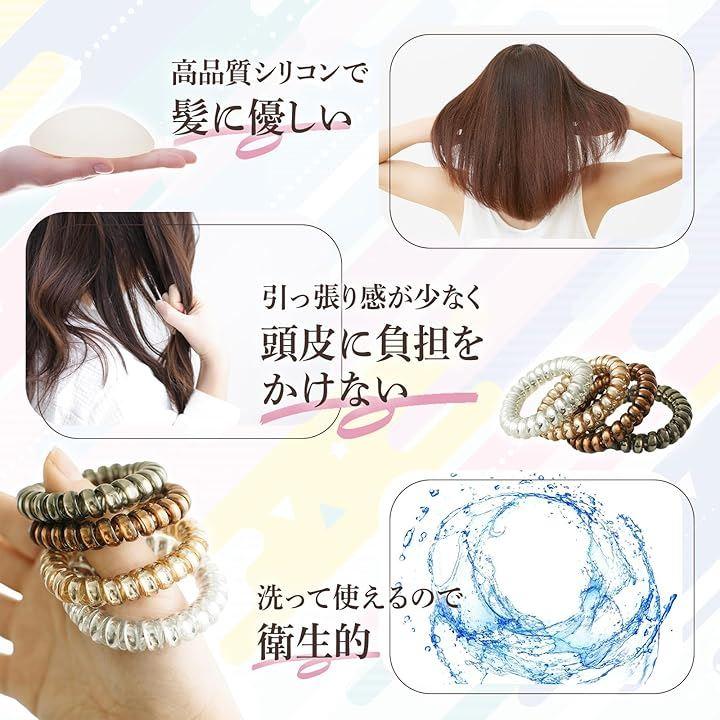 「跡がつかない」スパイラルヘアゴムは、髪に跡を残さない設計で、長時間の使用でも髪を美しく保ちます。