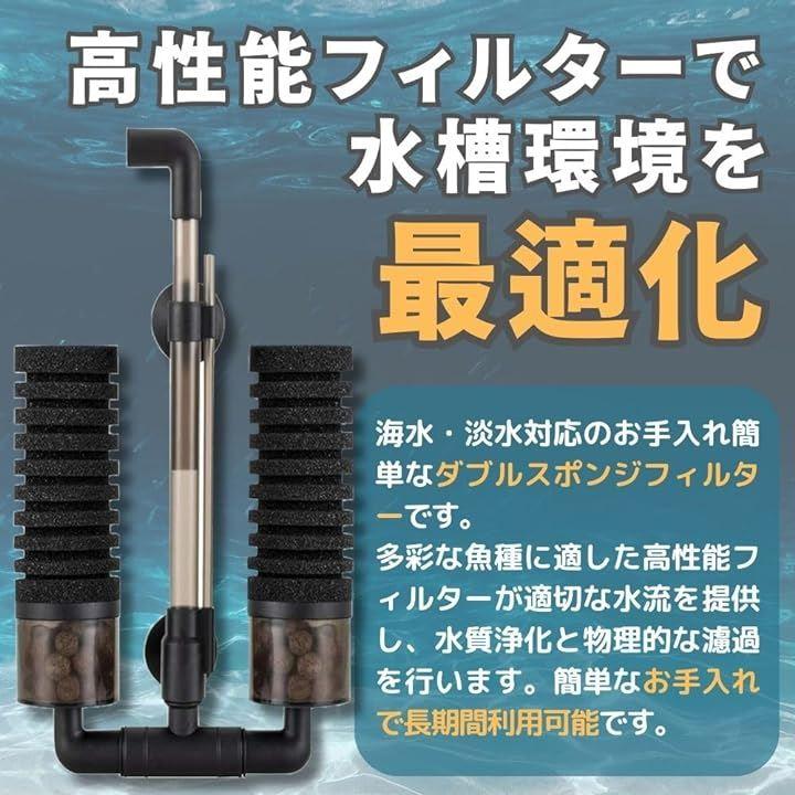 海水・淡水対応のお手入れ簡単なダブルスポンジフィルターです。