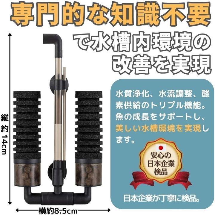 水質浄化、水流調整、酸素供給のトリプル機能で魚の成長をサポートし、美しい水槽環境を実現します。