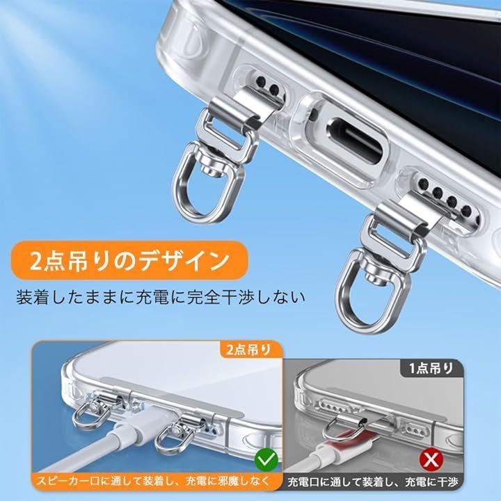 「2口タイプ、充電に完全干渉ない」: 従来の製品は1つの掛けリングを搭載して、充電口に通して装着するから、充電に干渉しやすいです。