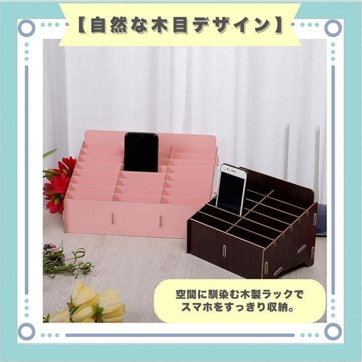 「自然な木目デザイン」空間に馴染む木製ラックでスマホをすっきり収納。