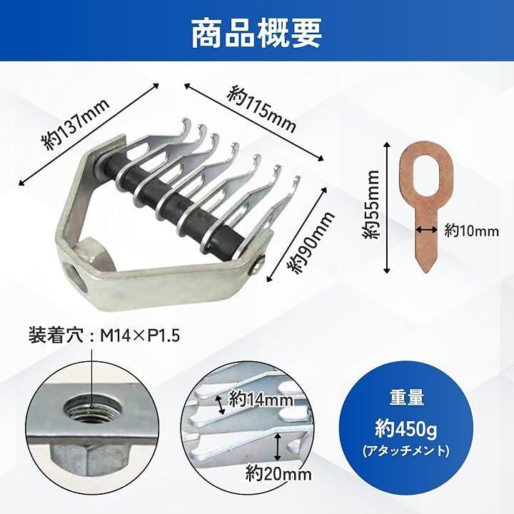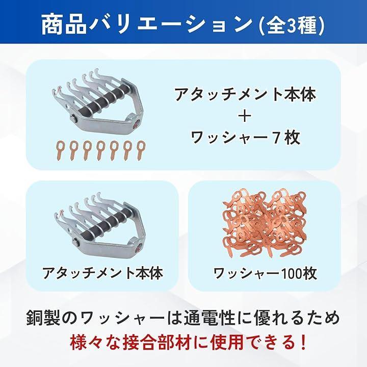 「実用的なアタッチメント」 平ワッシャーや7本爪タイプのプーラーを用途に応じて使い分け可能。
