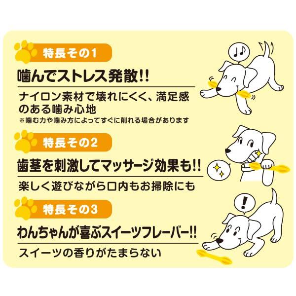 ハードタイプ!壊れにくいデンタルボーン!!噛むことが大好きなワンちゃん大満足!!噛んでストレス発散。ナイロン素材でこわれにくく満足のある噛み心地。歯茎を刺激してマッサージ効果も。楽しく遊びながら口内お掃除にも。わんちゃんが喜ぶスイーツフレーバー!バニラの香りがたまらない!!小型・中型犬用。