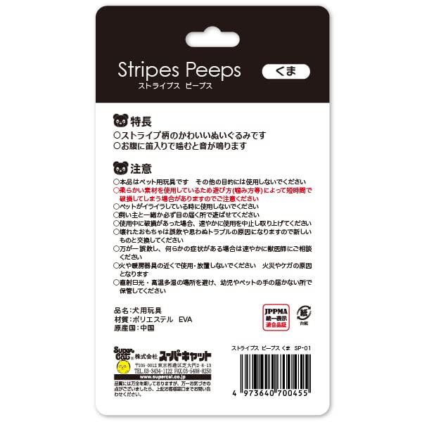 ・ストライプ柄のかわいいぬいぐるみです。 ・お腹に笛入りで噛むと音が鳴ります。 【 材質/素材】ポリエステル、EVA