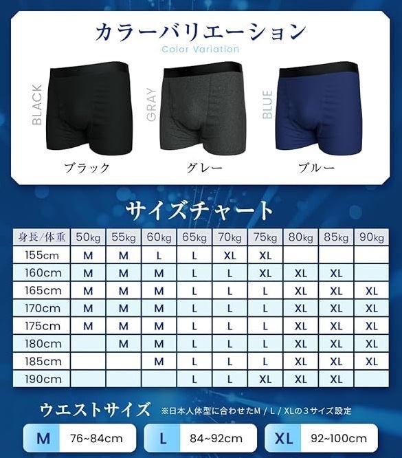 M / L / XLの3サイズ展開で、日本人男性の骨格や体型にフィットする尿漏れ防止パンツを開発しました。