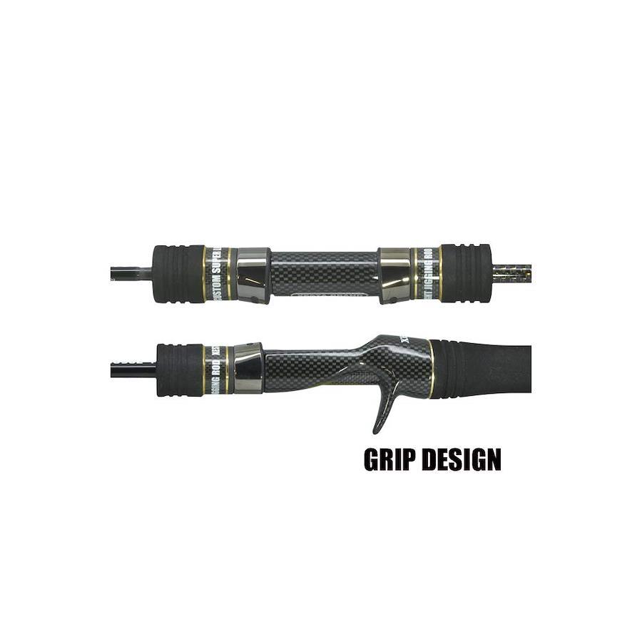 ターゲット無限大。スーパーライトジギング専用モデルアンダー100gのメタルジグを使ったジギングは一般的にライトジギングと称されているがこのモデルはジグウェイトをさらにダウンした20~80g前後を使用したスーパーライトジギング専用ロッドだ。オフショアジギングにおいて青物や根魚が一般的なターゲットであるがこのロッドはイサキやタイ、アジ、中型根魚などを想定して設計した。ライトライン、軽量ジグを使うとこれまでとは全く異なる世界が見えてくる。魚のバイトの多さに驚くことだろう。さらにライトラインでのスリリングなファイトは病みつきになるはずだ。これまでエギングロッドやライトゲームロッドを流用していたアングラーもいることだろう。専用ロッドの登場でさらにメソッドやターゲットが多様化しスーパーライトジギングシーンはこれまで以上の発展を見せるはずだ。B65XUL-FS ソリッドベイトスペシャルフィネススタイルのフルソリッドモデルのベイトバージョン。持前のしなりと貼りはそのままにベイトの利点のピンポイントを攻める事ができる。そしてしなやかなロッドワークでよりナチュラルにターゲットに