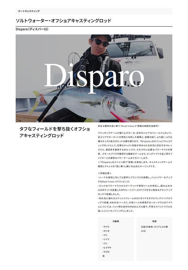 疾走る獲物・タフなフィールドを撃ち抜くオフショアキャスティングロッド【Disparo (ディスパーロ)】!!プラッギングゲームが盛り上がる一方、近年のシビアなフィールドにおいて、【各エリアやターゲットの特色に対応した戦略性】&【狙撃の如く、より遠く・より正確なキャスト能力】がヒットの鍵を握る。