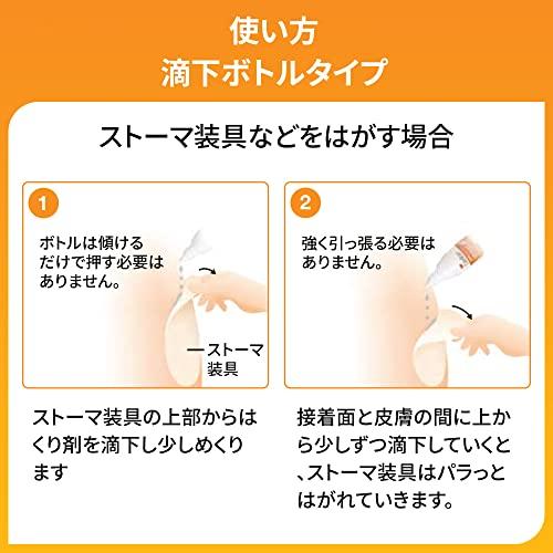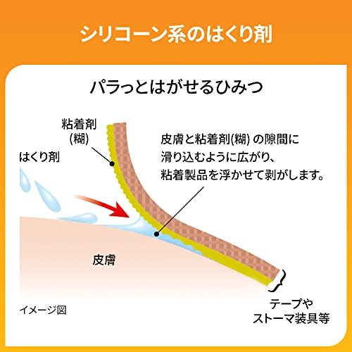 皮膚と粘着製品の隙間に滑り込むように広がり、粘着製品を浮かせて剥がすシリコーン系の剥離剤ですべたつきが少なく、サラッとした使用感です。剥がした後の皮膚の洗浄がラクに行えます。傾けるだけで滴下できるボトルタイプ、シートに剥離剤を含有したワイプタイプ、弱い力でも軽く握ってスプレーできるスプレータイプ(ノンガス)のご用意がありますボトルタイプ・スプレータイプは残りの液量が見える半透明ボトルを採用しており、ボトルタイプは30mLと50mLの2サイズからお選びいただけますストーマー装具や粘着製品をお肌からやさしく剥がします。非アルコール性で低刺激です。 皮膚用リムーバー タイプ:滴下ボトル 容量:50ml