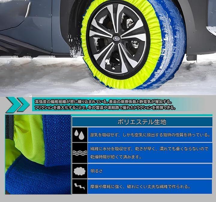 「タイヤチェーン布製」YEZOND非金属タイヤチェーンの表面は3Dファブリック技術を使用して強靭な繊維と撚(よ)り糸で織られています、特殊繊維が路面との摩擦面積を確保し、表面の毛羽立ちが雪面に張り付いていく際に生まれる抵抗性を利用したグリップ力が効果を発揮。