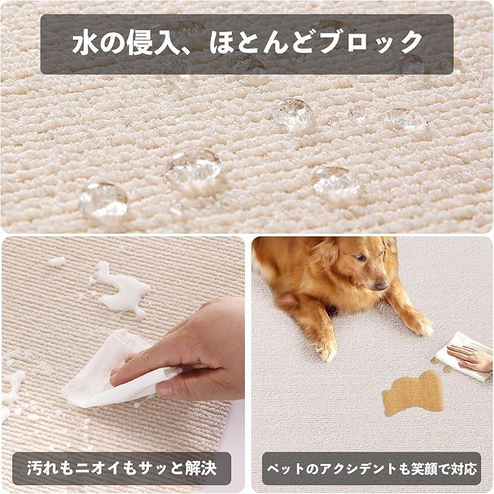 1.「撥水性能」ペットの水遊びやキッチンの水はねなどの水滴を素早くはじき、サッと拭くだけで清潔を保ち、裏面の湿気対策でカビも防ぎます。