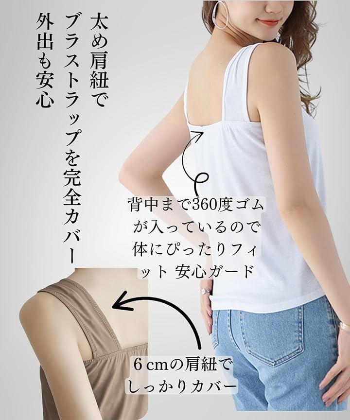 「ブラ紐を隠せる」太めの肩紐デザインでブラジャーのストラップをカバー。