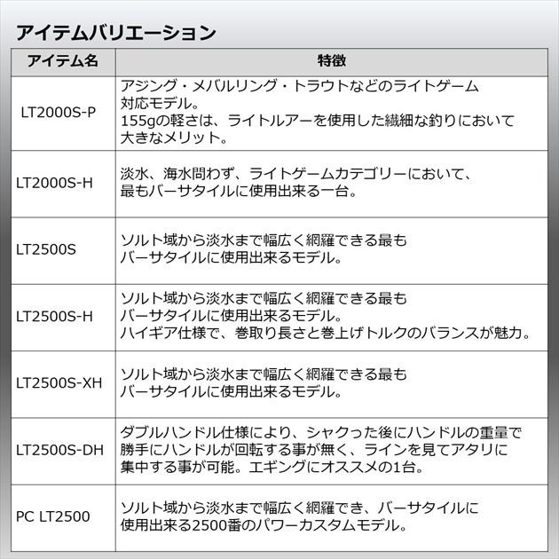 小型スピニングリールに求められる機能と美。ダイワのクラフトマンシップから生み出された、ひとつの結晶、NEW EXIST。単なる道具としてだけではなく、アングラーと心通わせるものにするためにNEWEXISTは、そのデザインやサービスにも想いを込めている。ショア、オフショアを問わず、あらゆるフィールドで調和するピュアな造形。末永く安心してお使いいただくためのユーザーサポート。すべては、未来のルアーフィッシングシーンを切り拓く存在であるために。■LT2500S・・・ソルト域から淡水まで幅広く網羅できる最もバーサタイルに使用できるモデル。 巻取り長さ:72cm/ハンドル1回転 ギア比:5.1 自重:160g 最大ドラグ力:5kg 標準糸巻量 ナイロン:4lb-150m 標準糸巻量 PE:0.6号-200m ベアリング ボール/ローラー:12/1 ※実物と色が違って見える場合があります。あらかじめご了承下さい。