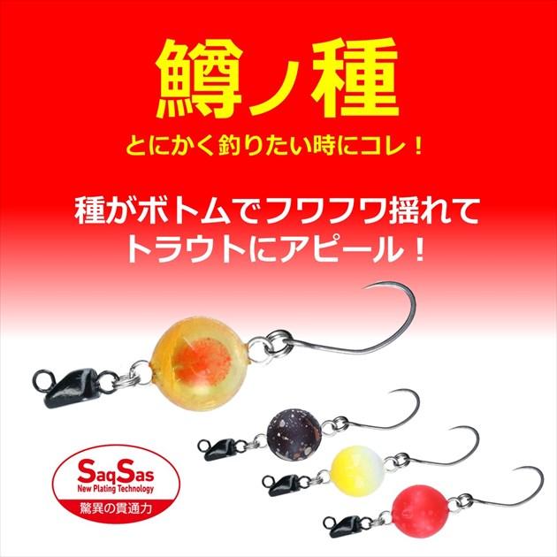 とにかく釣りたい時にコレ!! 種がボトムでフワフワ揺れてトラウトにアピール!フェザージグ(鱒ノ華)が使えないエリアで使える。(※エッグルアー自体が使用禁止エリアや、ルアーの大きさ規制のあるエリアもあるのでレギュレーションご注意ください)ウエイトと種(浮力体)を分離。種が水の動きに合わせてユラユラと誘う。サイズは小の直径10mm/1.5gと中の12mm/2.1g。投げ易く、扱い易いサイズ。脅威の貫通力 サクサスフック標準搭載。ビギナーにも安心の太軸のフック。 直径:10mm ルアーウエイト:1.5g ※実物と色が違って見える場合があります。あらかじめご了承下さい。