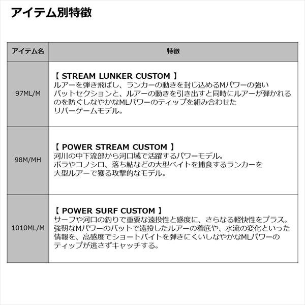 標準自重:111g 全長:2.62m 継数:2 仕舞寸法:135cm 先径/元径:1.7mm/10.8mm ルアー重量:7-35g 適合ラインナイロン:8-16IB 適合ラインPE:0.6-1.5号 カーボン含有率:100% 【ダイワ キャスティング情報2021】【21newdaiwa】 至極のシーバスロッド「BRANZINO」その強さに「EXPERT」の軽さを融合したダイワの最高傑作!軽さと感度、操作性、パワー、すべてを高次元で達成したシーバスロッドの最高峰10%に迫る大幅な軽量化によって鋭敏な感度と高い操作性を実現■87ML(アーバンサイドカスタムO3) あらゆるキャストモーションやルアー操作が 軽快な大野ゆうき監修SPモデル ■94ML(マッチザバイトカスタム) 87MLの操作性を極限まで保って ロングレングス化 遠投性を強化した大野ゆうき監修SPモデル■97ML/M(ストリームランカーカスタム) Mパワーの強いバットセクションとしなやかな MLパワーのティップのリバーゲームモデル■98M/MH(パワーストリームカスタム) 河川中下流部から河口域で大型ベイトを捕食する ランカーを大型ルアーで獲るパワーモデル■1010ML/M(パワーサーフカスタム) サーフや河口の釣りで重要な遠投性と感度に さらなる軽快性をプラスした大場所モデル