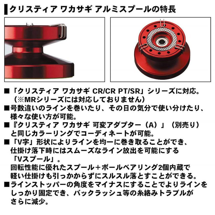 カラー:ゴールド糸巻き量(PE):0.5号-30mクリスティアワカサギ電動リール専用(MRシリーズ対応していません)可変アダプター(A) と同じカラーリングでコーディネート。マイナス角度糸止めで糸トラブルしにくい。スムーズ落下、2ボールベアリング内臓!糸溜まりしにくいVスプール仕様。