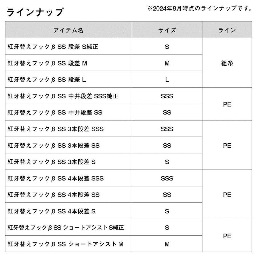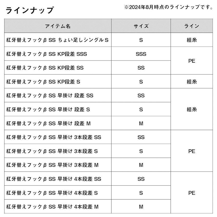 βシステム対応の紅牙替えフックシリーズリニューアル【免責事項】※メーカーのリニューアルに伴い仕様・カラー等が予告無く変更になる場合がございます。新パッケージでお届け致します事ご了承願います。