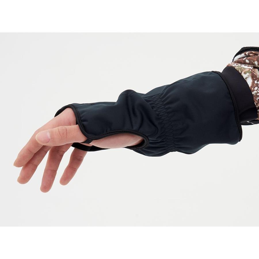 甲側は防風性のある素材を使用。内側にはあたたかみのあるフリース素材を使用。防寒性を高めるため、手首は長めの設計。防寒ウエア袖口の内側に装着できるサイズ感。【免責事項】※メーカーのリニューアルに伴い仕様・カラー等が予告無く変更になる場合がございます。新パッケージでお届け致します事ご了承願います。