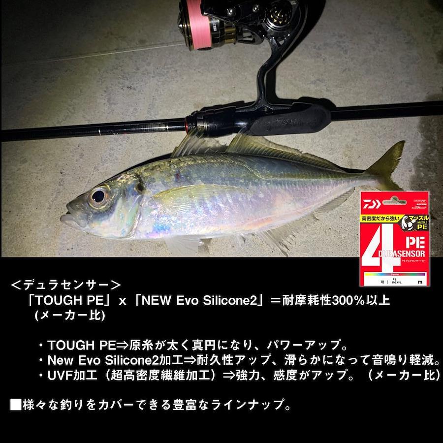 耐摩耗性・耐久性に優れた高密度「マッスルPE」! 糸としての質が格段に向上! 耐摩耗性に優れたデュラセンサーの中でも、密に編み込まれたラインがマッスルPE。「こすれに強い/耐久性向上/音鳴り軽減/飛距離アップ」