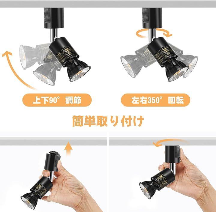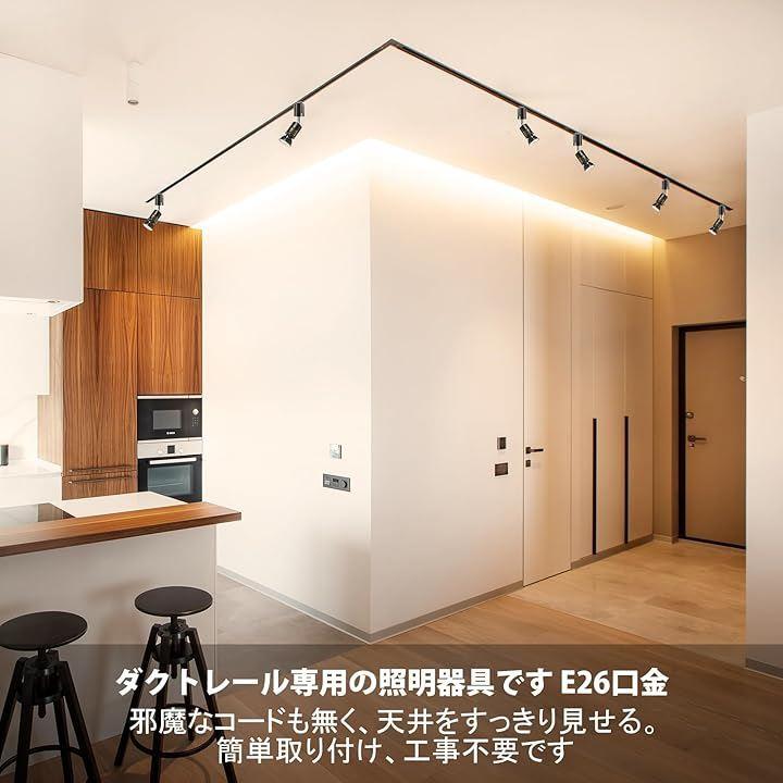1、電球付き:5.5W E26 LED電球(6個)+ダクトレール用器具(6個)、5.5W(60W 相当)、全光束550lm、ビーム角度 90°、明るさの演色性Ra95、電球色3000K照明 おしゃれ 照明器具。