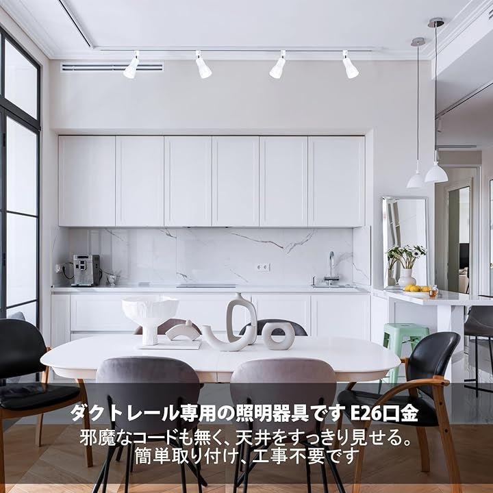 1、電球付き:9W E26 LED電球(1個)+ダクトレール用器具(1個 ホワイト 器具セット)、9W(LEDレフランプ60W形相当)、全光束900lm、明るさの演色性Ra80、昼白色5000K照明 おしゃれ 照明器具。
