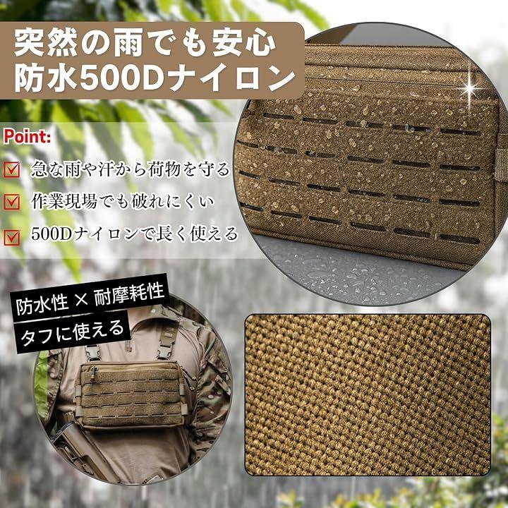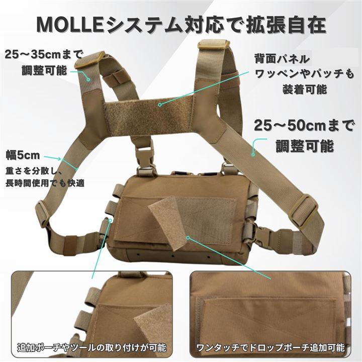 用途に応じて拡張性を高めることができ、サバイバルゲームやアウトドア活動だけでなく、現場調査や作業で必要なツールを素早く取り出すシステムバッグとしても機能します。