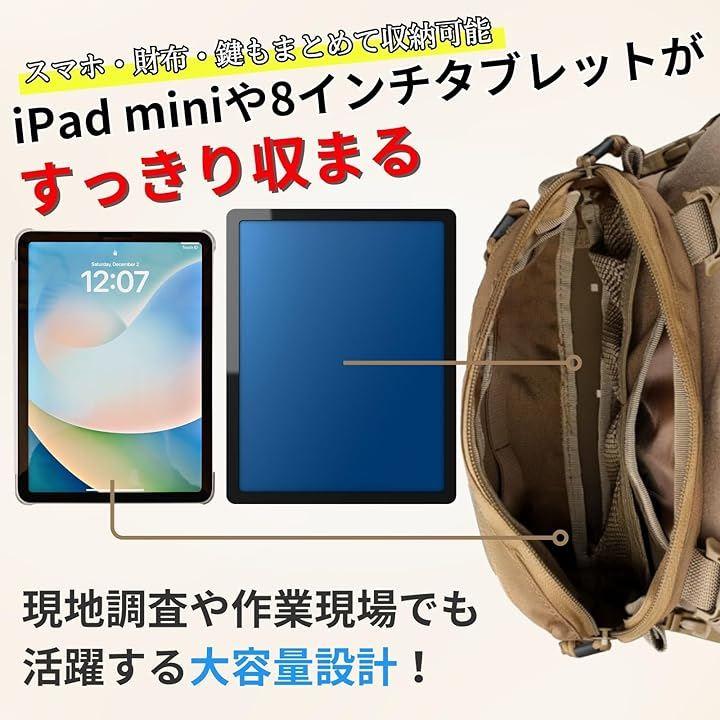 「iPad mini対応の大容量収納」 コンパクトなサイズながら、内部は広めに設計されており、iPad miniや8インチタブレットがすっきり収まる収納力を備えています。