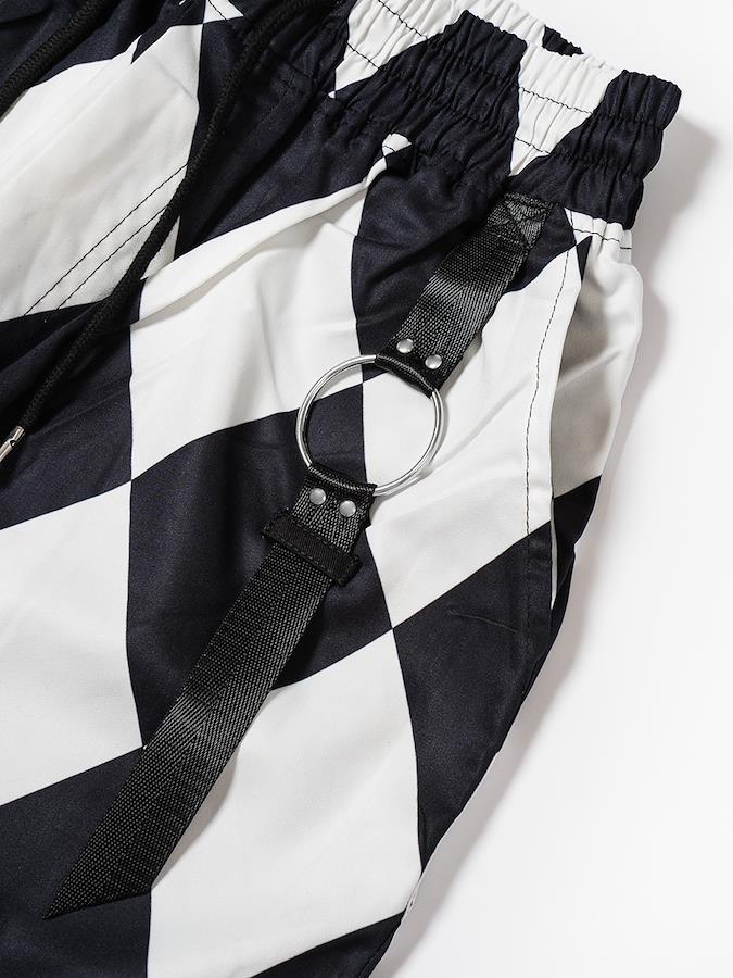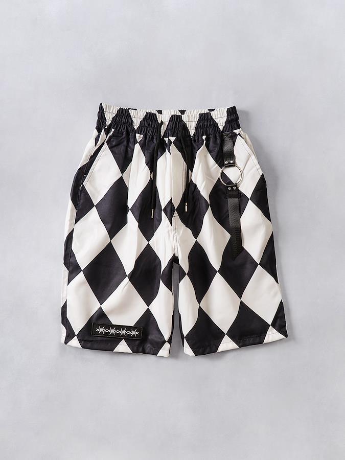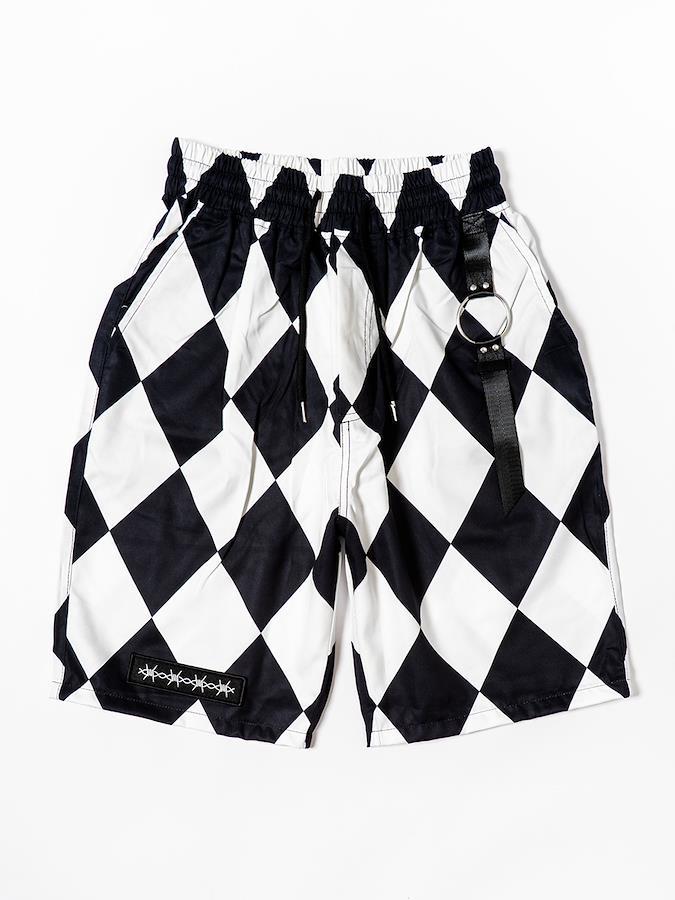 コーデの主役になる個性的なデザインのショートパンツ。大きめのリングと右裾のパッチがアクセント★長時間でも疲れにくいウエストゴムでフェスなどのイベントにもおすすめです