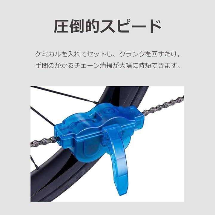 セットしてクランクを回すだけの簡単操作でスピードのチェーン清掃が可能です。