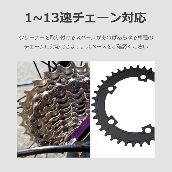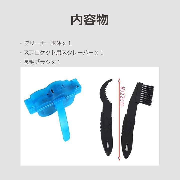 「チェーン汚れスッキリ」チェーンプレートの内側に届く機構で、通常のブラシでは届きにくいチェーンの内側に届き油やホコリの汚れを掻き出します。