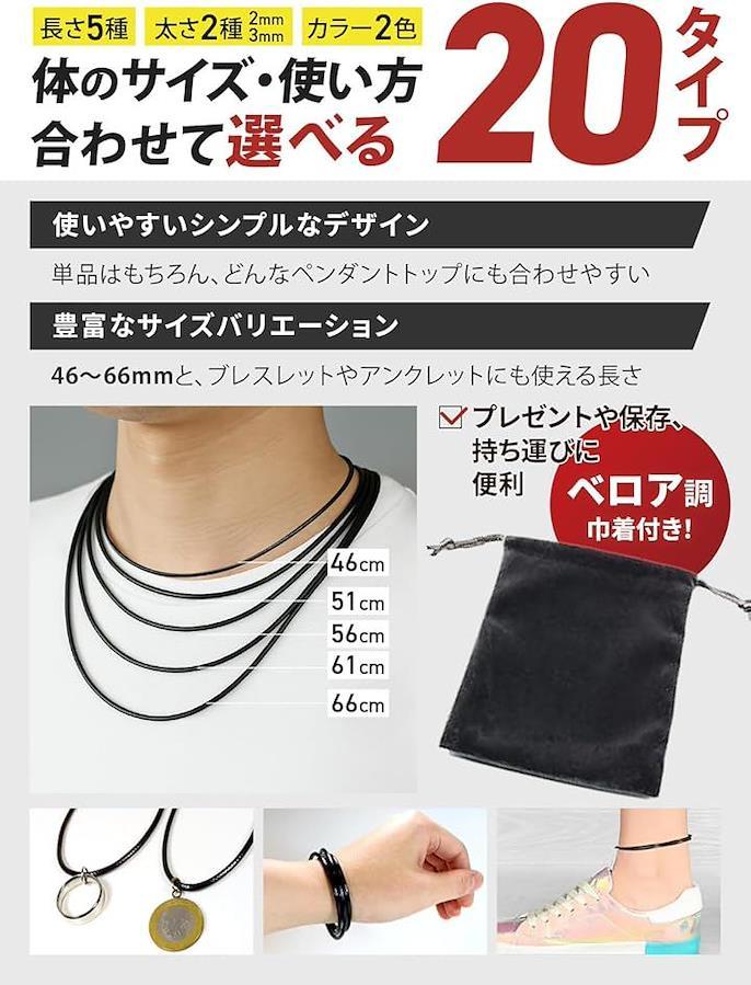 紐 の太さは2mmと3mm、長さは46cm/51cm/56cm/61cm/66cmからお選び頂けます、長さの調整不可