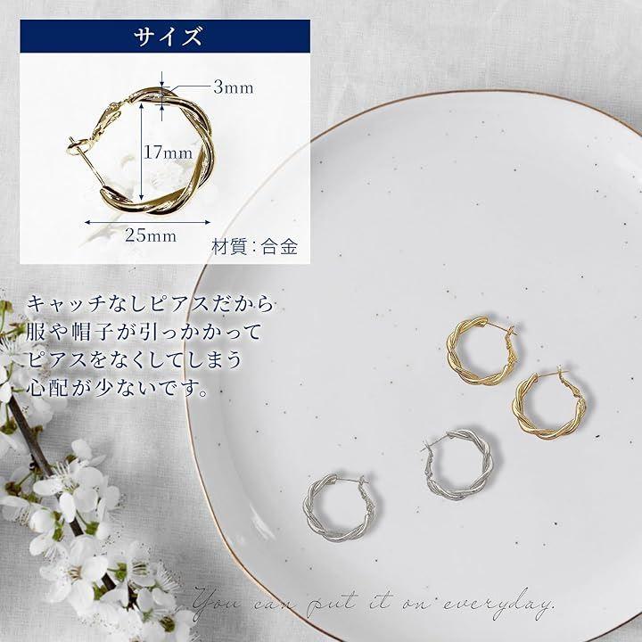 ツイストフープピアスは、シンプルながらもエレガントなデザインで、存在感のある大きめサイズが魅力です サージカルステンレスとシルバー925を使用し、金属アレルギー対応で、つけっぱなしでも快適です 中折れ式のキャッチレスデザインにより、簡単に装着でき、しっかりとしたフィット感を提供します 日常使いから特別なシーンまで、どんな装いにも合わせやすく、華やかさをプラスします 自分へのご褒美や大切な人へのギフトにも最適な一品です