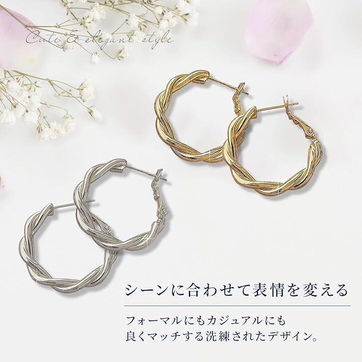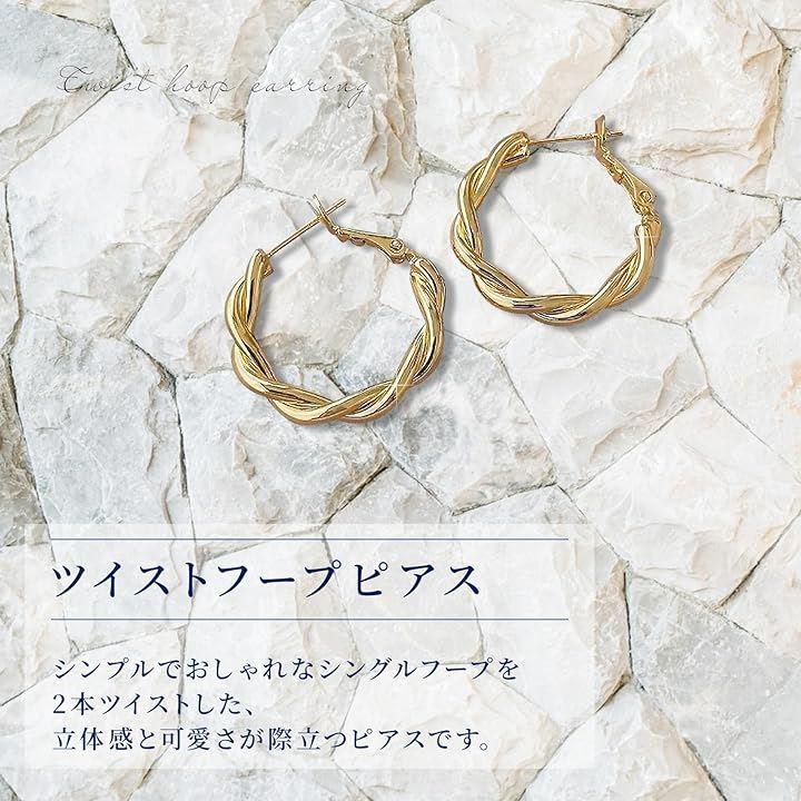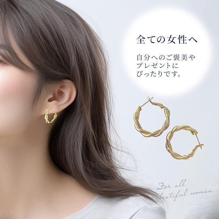ツイストフープピアスは、シンプルながらもエレガントなデザインで、存在感のある大きめサイズが魅力です。
