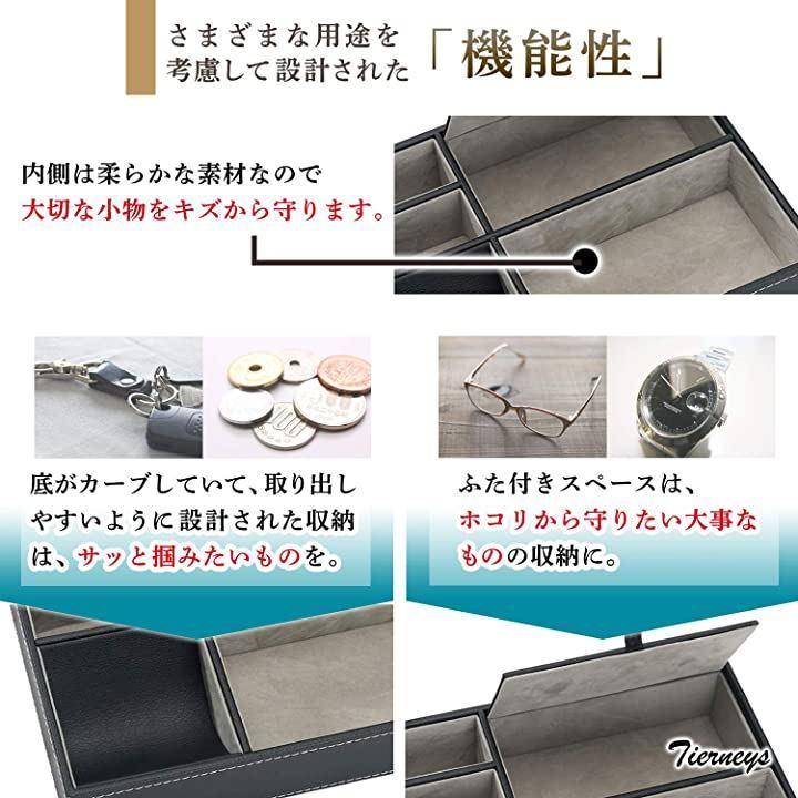 ・大中小5つのコンパートメントに、鍵、コイン、指輪、スマホ、時計、リモコンなど色々な小物の収納に役立ちます。