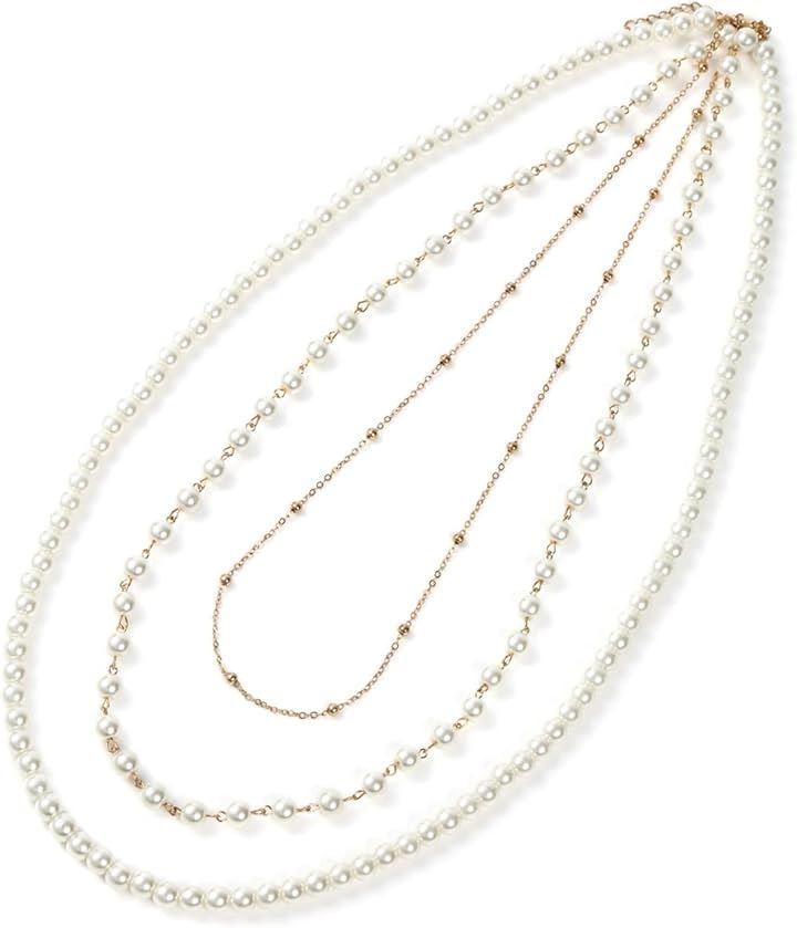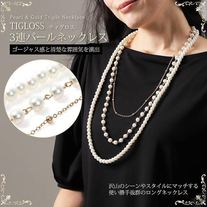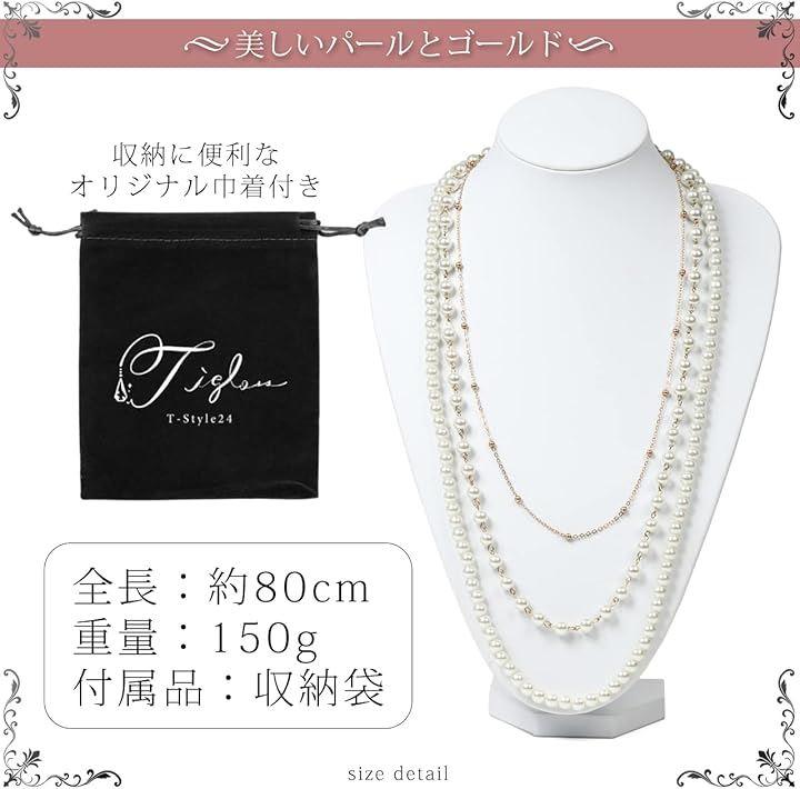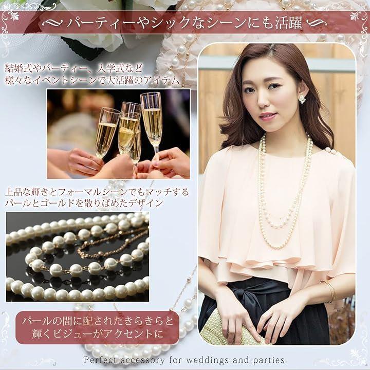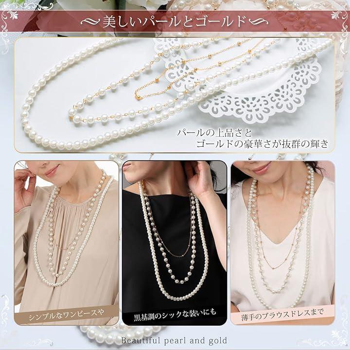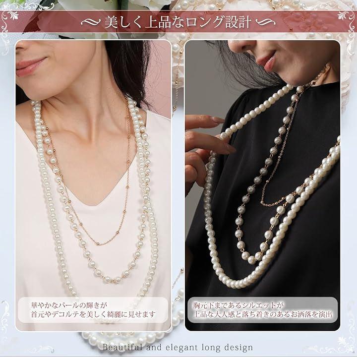 「美しく上品なロング設計」華やかなパールの輝きが首元やデコルテを美しく見せます。