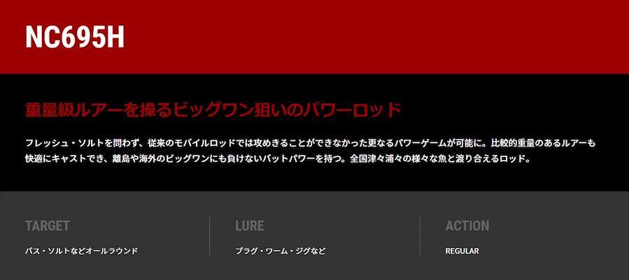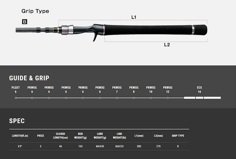 全長6.9ft継数5本仕舞45.5cm自重165g先径2mm元径12.4mmLURE WTMAX 45gLINE WT MAX 25lb