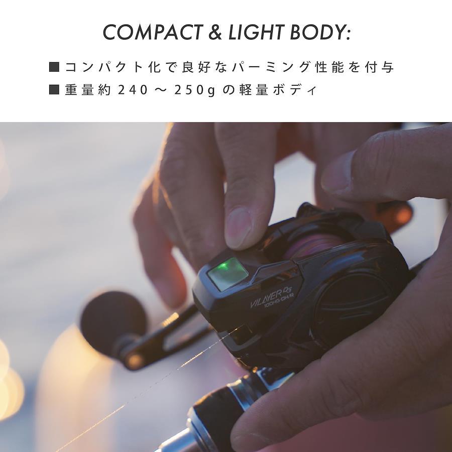 イカメタル・タチウオジギング・タイラバなど、魚影が濃いレンジを的確に攻める釣りで、さらに緻密なゲーム展開を可能とするデジタルカウンターリールの新機軸。実釣に即したtailwalk独自の機能を、このリールにもふんだんに盛り込んだ。なかでも特筆すべきは「スプールのワンタッチ交換」ができること。不意な高切れに対しても迅速なリカバリーが可能となる。また、ライン入力設定を2種類保存可能なため、違う太さや長さのラインが巻かれたスプールを船上で切り替えることもできる。さらに、デジタルカウンターリールの核ともいえる液晶ディスプレイは、11×21mmサイズの超大型ディスプレイを採用(LEDバックライト付き)。文字も大きく表示されるため、夜間でも極めて高い視認性を維持する。その名の通り、釣れる層(Layer)を明確に視覚化(Visualize)し、他の釣り人たちを出し抜く「別次元の釣り」を展開できるリールが誕生した。■サイドカバーの開閉がワンタッチで即座にスプール交換が可能■現在の水深がひと目でわかる大画面11×21mm液晶ディスプレイ搭載■ナイトゲームでも視認性抜群の緑色LEDバックライト(任意でON / OFF可能)■2スプールメモリー機能。各号数モードorスマートモードの中から2種類のライン入力を記憶(PE0.8号‐300m/PE1号‐300m/PE1.5号‐150m/PE2号‐150m/PE3号‐100mの5モード。PE0.4~0.6号の細番手などはスマートモードで対応可能)■高切れによるデータの狂いを瞬時に補正する高切れ補正機能付き■魚の取り込みタイミングや仕掛けの巻き込み防止を知らせる船べりアラーム搭載■電池はワンタッチで即交換可能(電池タイプ:CR2032)。交換の必要性を予告するお知らせ機能付き■DH:120mmダブルハンドル&30mmEVAファットI型ノブPH:70mmシングルハンドル&36mmEVAラウンドノブ■フリッピング機構搭載(切り替え可能)。サムバーを押さえ続けることでクラッチオフ、指を離すと同時にクラッチオン。フォールでのアタリを瞬時に掛けていくことができる■ビッグフィッシュとのファイト時に役立つドラグサウンドシステム搭載■ドラグはライトゲームの常用域である500~1500g範囲のドラグテンション幅を大きく確保。スタードラグが一定のポジションを維持し、安定した調整が可能なステーショナリードラグを採用■センターフレーム&サイドカバーは強化カーボンマテリアルを採用し、剛性と軽さを両立■ローダウン化&サイドカバーのコンパクト化で良好なパーミング性能を付与■脱落防止機能付きスライドワンタッチオープンサイドカバー■ドライブギアには高い耐久性とパワフルな巻き心地が魅力の超硬質ブラスギアを採用■軽量でスムーズな糸の放出を実現する32mm径アルミスプール■天候に左右されない安定した効き具合が魅力の内部調整式マグネットブレーキ搭載
