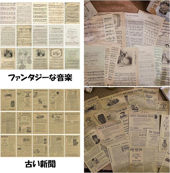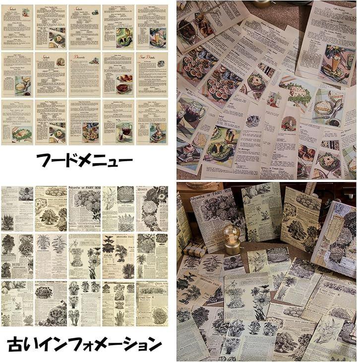 「商品の特徴」(1)レトロ&アンティーク風デザイン:洋書・英字・古地図・花柄など、ノスタルジックな紙ものデザインが満載 (2)素材紙たっぷりセット:種類豊富な柄がたっぷり入っており、飽きずに使える (3)使いやすいサイズ感:手帳・ミニアルバム・ジャーナルに。