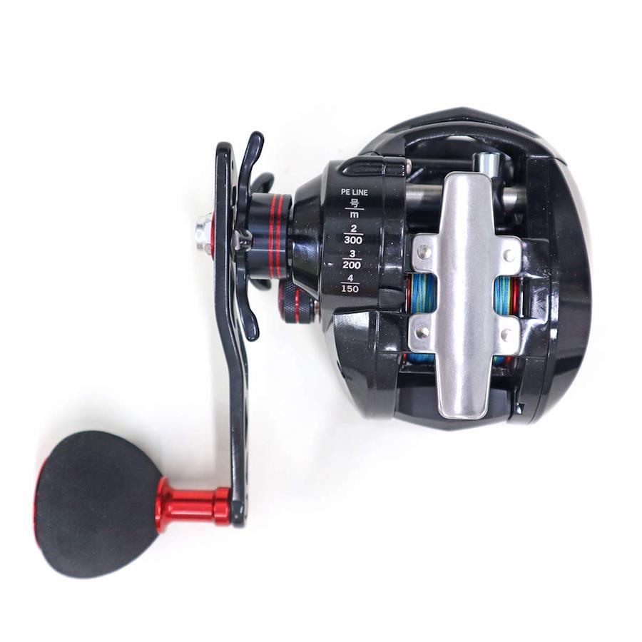 ■品名:デジタルアース ■品番:DE250PE ■1WAY+5ボールベアリング ■ロングパワーハンドル(75mm/85mm) ■EVAラウンドノブ ■ギア比 6.3:1 ■自重 約312g ■最大ドラグ力 5kg ■右ハンドルモデル ■ライン糸巻量(PEライン) 2号 約300m 3号 約200m 4号 約150m ■JAN:4997223336022 ■ブランド:PRO MARINE