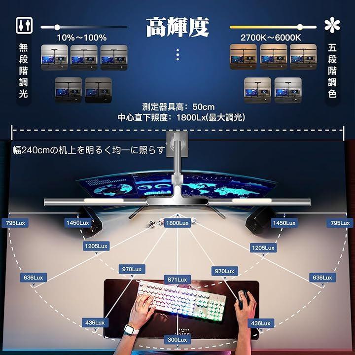 」無段階調光(明るさ10%-100%)、無段階調色(2700K~6000K)。