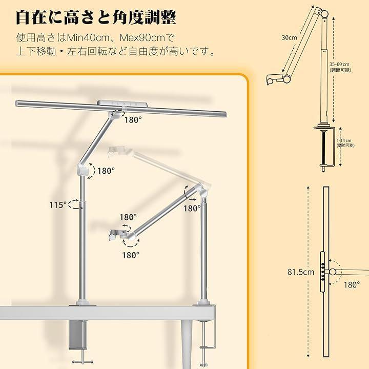 LEDライトは頑丈なクランプで厚さ14cmまでのテーブルに固定させ、デスクトップスペースを活用。