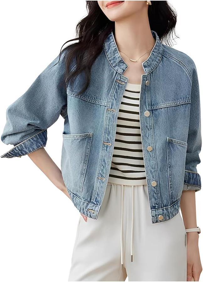 ワイドな身幅と、ショート丈が特徴的なクロップドデニムジャケット。